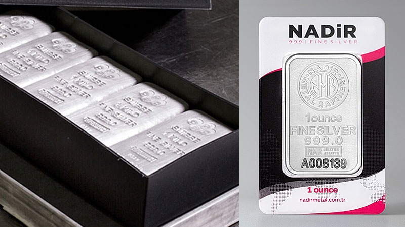 در میان برندهای ترک، شمش نقره ندیر (Nadir) با سابقهی طولانی و نشان کیفیت ممتاز، شناختهشدهترین نماینده بازار ایران است. در همین خانواده، کینگ ندیر (King Nadir) با طراحی لوکس و جلوهی بصری جذاب، انتخاب محبوب سرمایهگذاران ریزبین محسوب میشود.