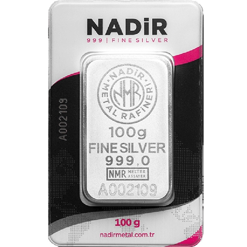 خرید شمش نقره ۱۰۰ گرمی ندیر انتخابی ایدهآل برای افرادی است که بهدنبال سرمایهگذاری مطمئن و خرید نقره با بالاترین عیار هستند. این شمش که از نقره خالص با عیار ۹۹۹ ساخته شده، در رده باکیفیتترین محصولات بازار نقره قرار دارد و به دلیل خلوص بالا، ارزش ذاتی و دوام مثالزدنی، میان سرمایهگذاران و کلکسیونداران محبوبیت ویژهای یافته است. برند ندیر (Nadir) بهعنوان معتبرترین تولیدکننده شمشهای نقره و طلا در ترکیه، با استانداردهای جهانی و تأییدیه LBMA، تضمینکننده اصالت و کیفیت این محصول است.